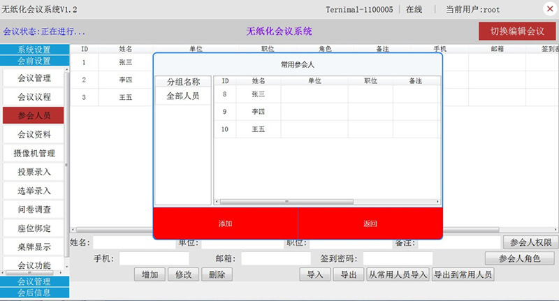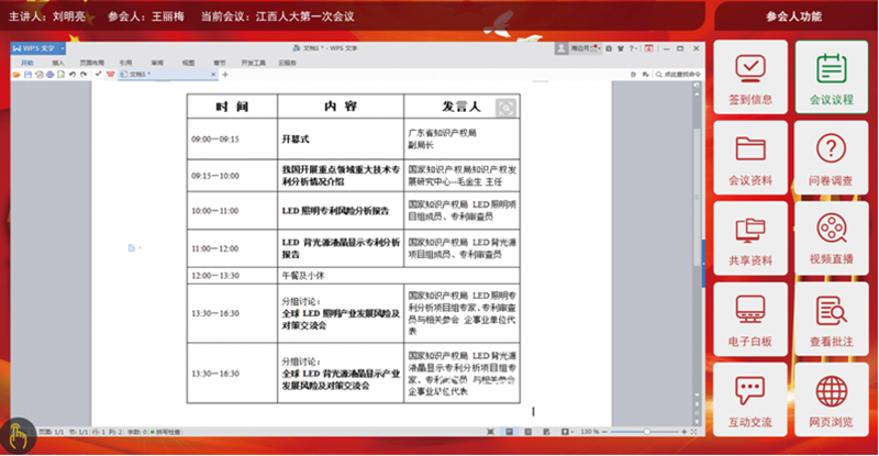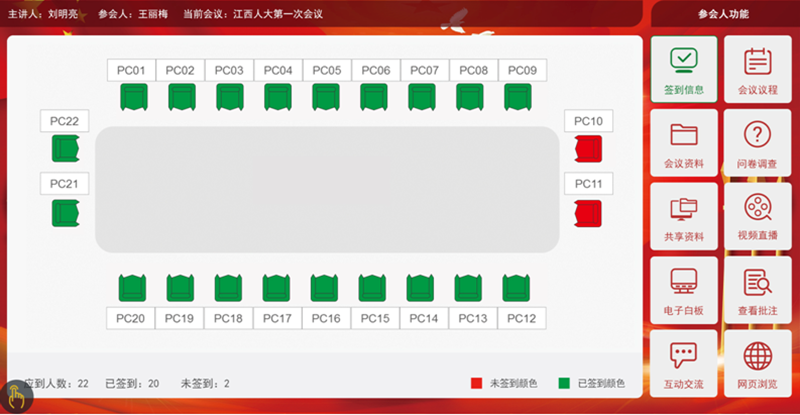1.會前準備:會前準備包含會議室預約及管理,同時對確定的會議室設備進行開會前資料上傳,席位的準備及參會人員名字的錄入等。