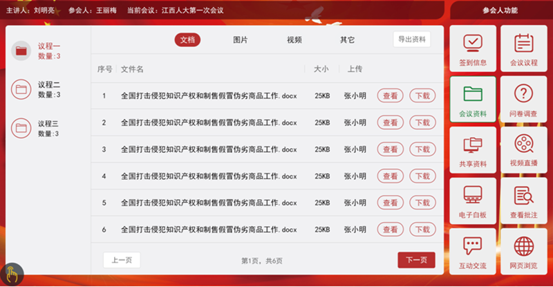 7.資料存檔;對會議數據進行歸檔,保存至服務器,可進行查閱。